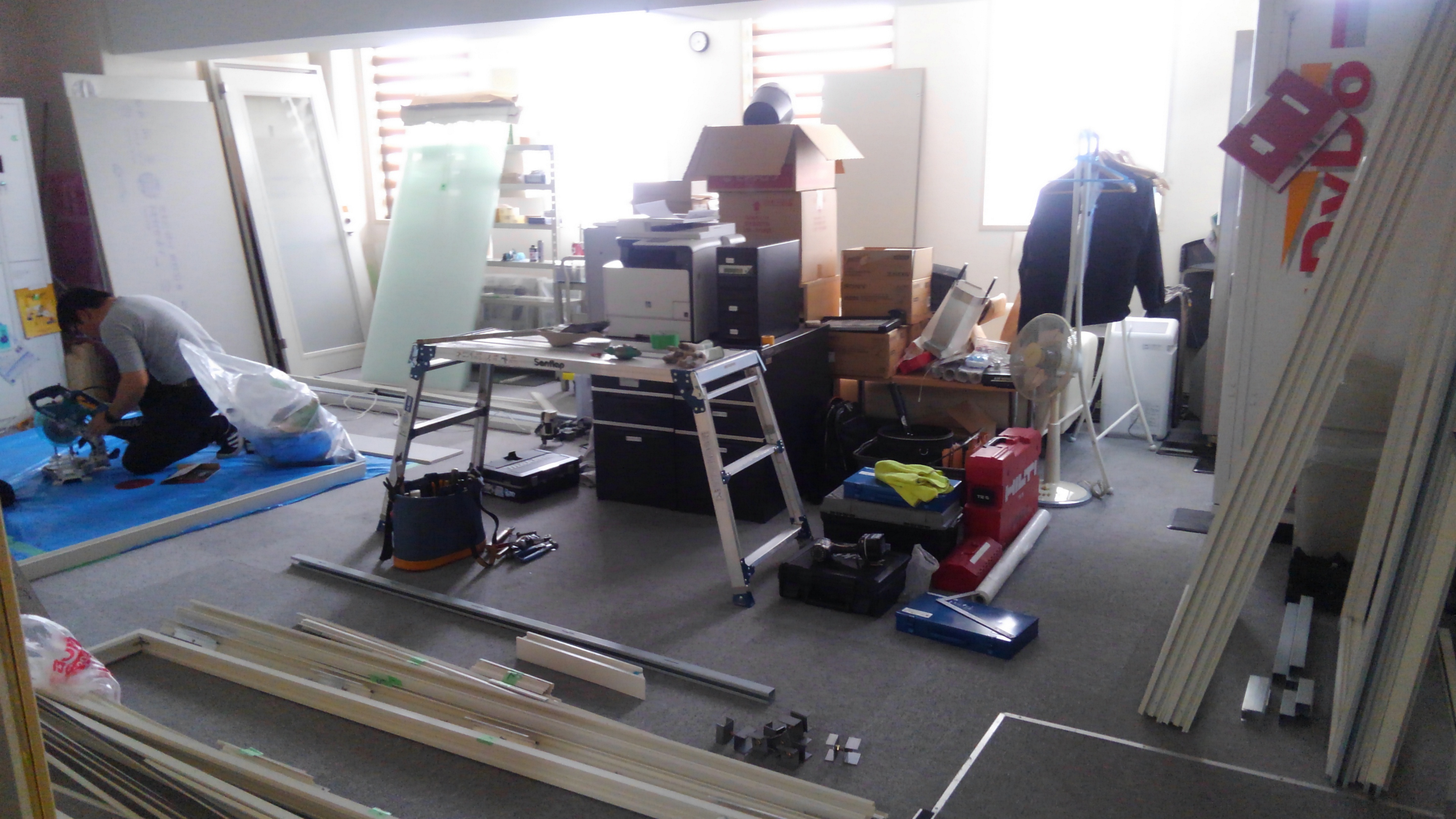 ガラス壁のフレームが取り付けられるだけでかなり部屋っぽいですよねー