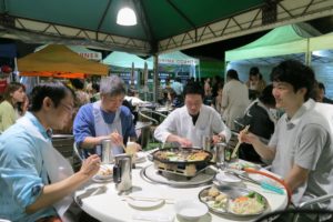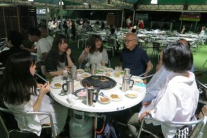 お天気は残念ながら曇り空でしたが、暑すぎず寒すぎずでちょうど良かったです。みんな、いっぱい食べて、飲んで、楽しみました。